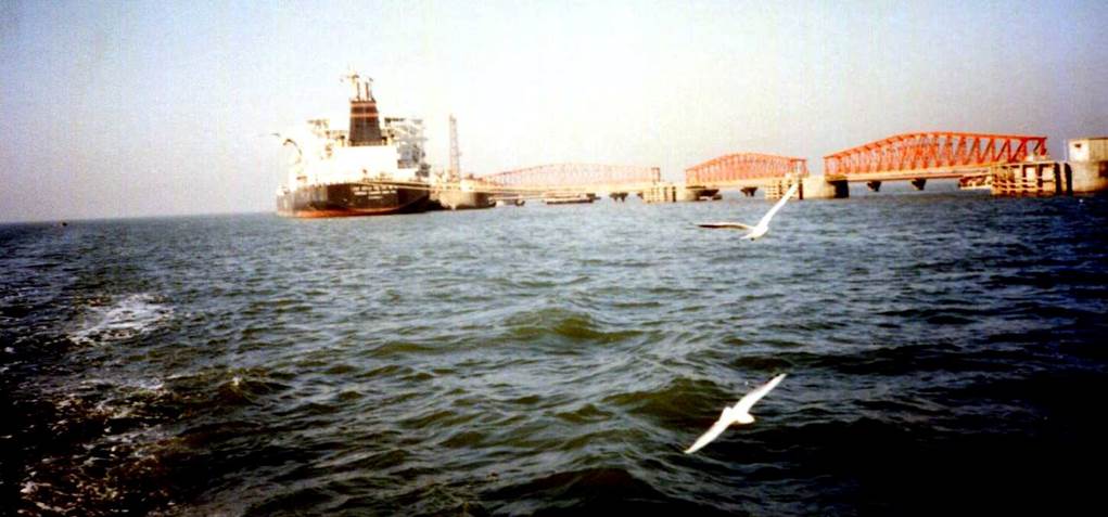 Boats dock at the pier at India Gate for tourists and locals to transport by sea.