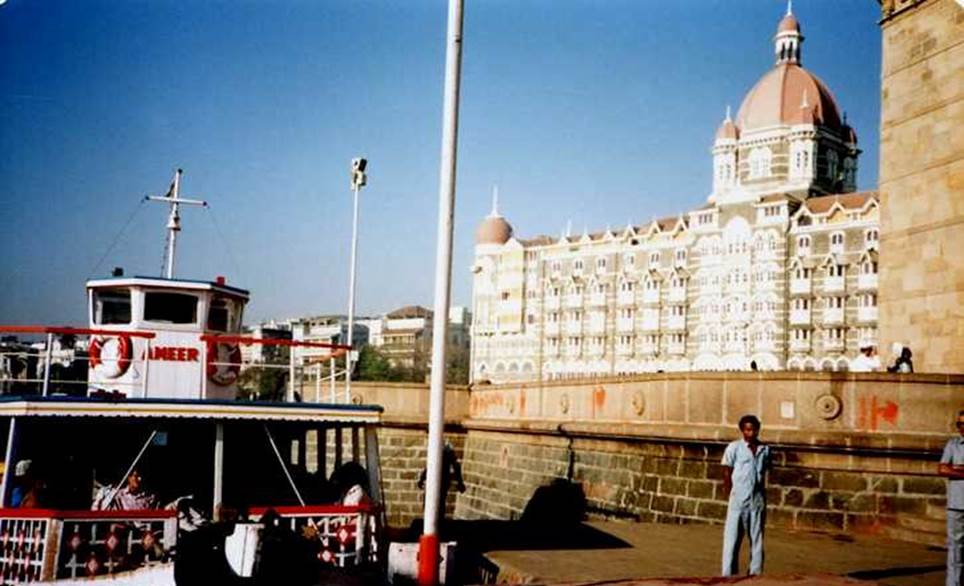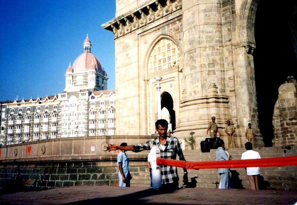 Taj Mahal Hotel in the back on the left, India Gate on the right,