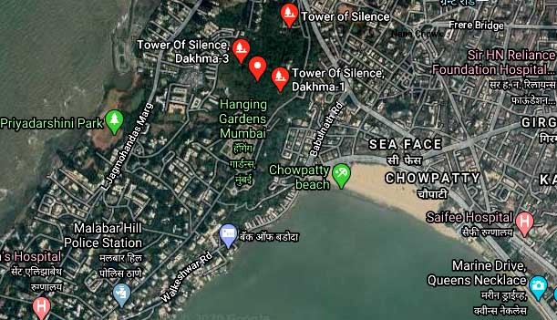 There is a bowed beach facing the Arabian Sea on the west side of Mumbai city centre, and it is called Marine Drive. High-end high-rise residential buildings line this coast. The north side of Marine Drive is called Malabar Hill, and there was a tower of silence in this forest and a sanctuary where bird burials were held.