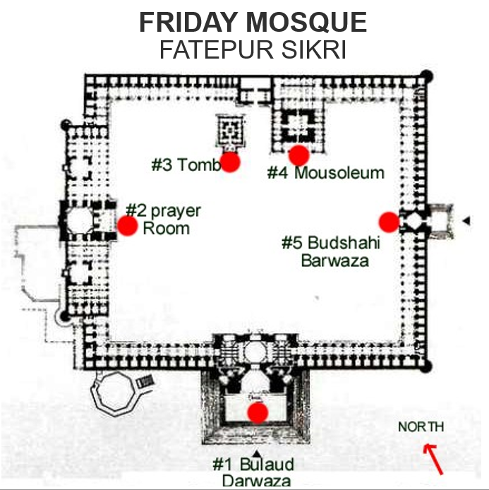 To the southwest of Akbar Palace is the independent Friday Mosque.