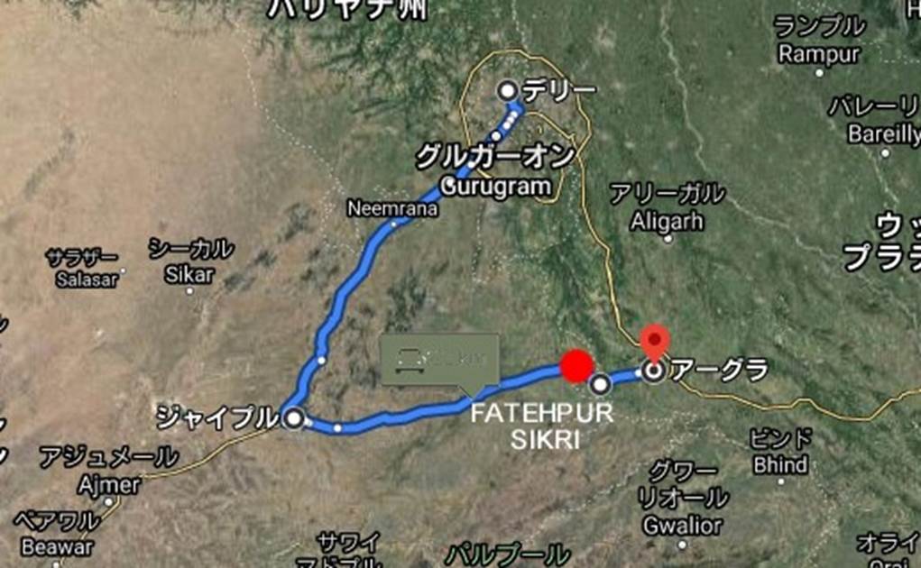In the early morning hours of February 7, 1989, I checked out of the Maharajah’s Lumbar Palace Hotel in Jaipur, the capital of Rajasthan, and visited Fatehpur Sikri for the first time in a Hindustan Motor Ambassador car with a driver and interpreter who we had booked in advance.  It takes about 205 km on Route 21 and we arrive in about three and a half hours if you don’t include breaks.