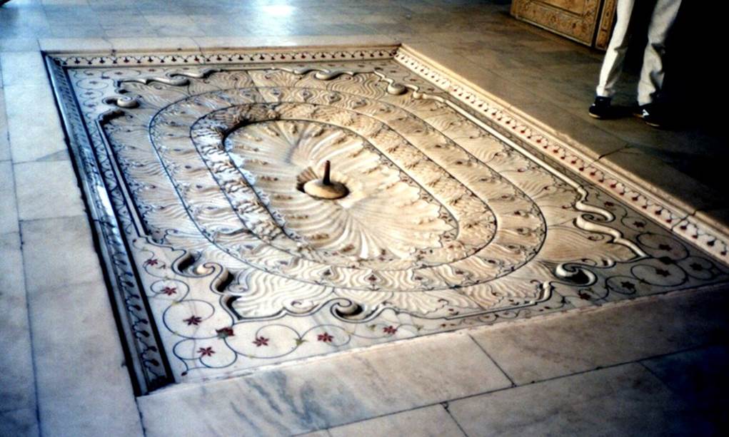 If you go through the Great Gate in the south and proceed north through the large garden, you will come to a huge white marble building (mausoleum) in the center of a corner facing the Yamuna River at the northern end of the site.
