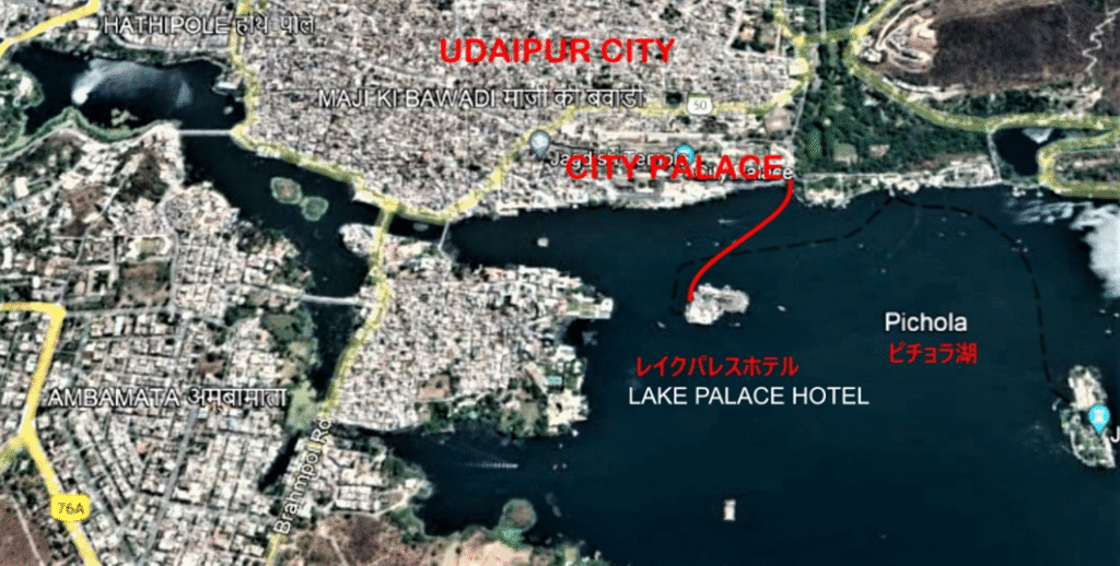 Built on a hill facing the shores of Lake Pichola, the City Palace overlooks the Taj Lake Palace Hotel (a summer palace) on the lake.