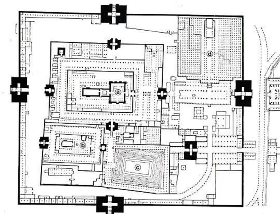 The wall in the photo above is the outermost defensive wall, which must have been 8 meters high. The inside is a sanctuary and the outside is a secular area, and the distinction between them is clearly expressed visually.