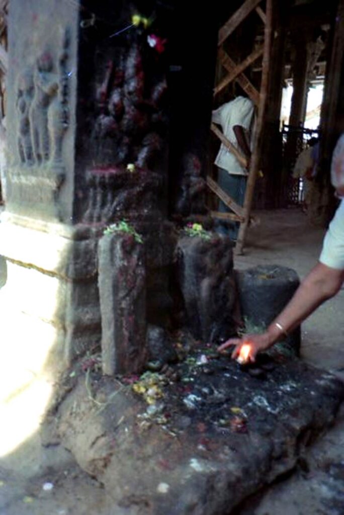 The stone pillars of the Hindu temple are at the same time sculptures themselves. The pillar itself as an object must be regarded as sacred.