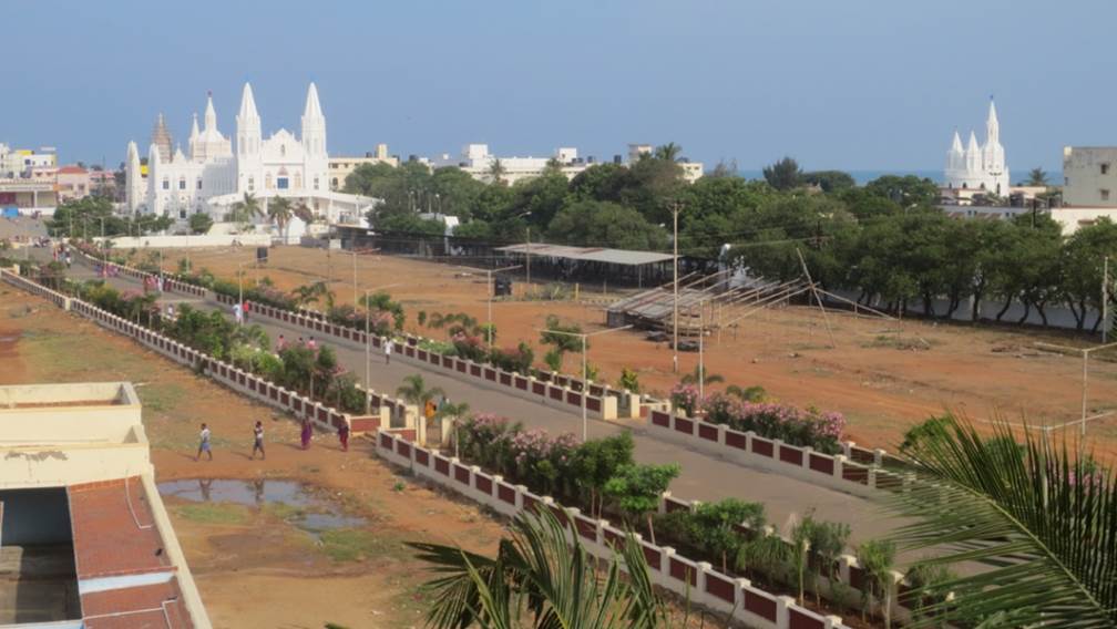 If you leave the church and walk straight along the approach to the south, you will reach the Bay of Bengal in the Indian Ocean, where many pilgrims enjoy the seaside.