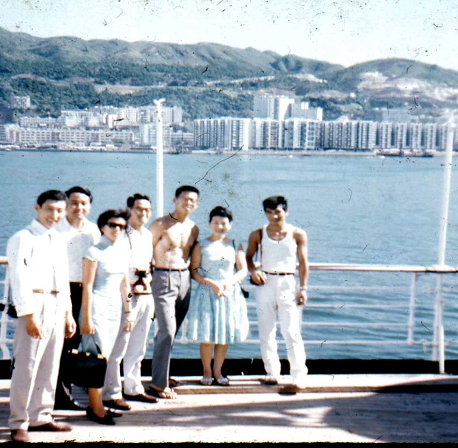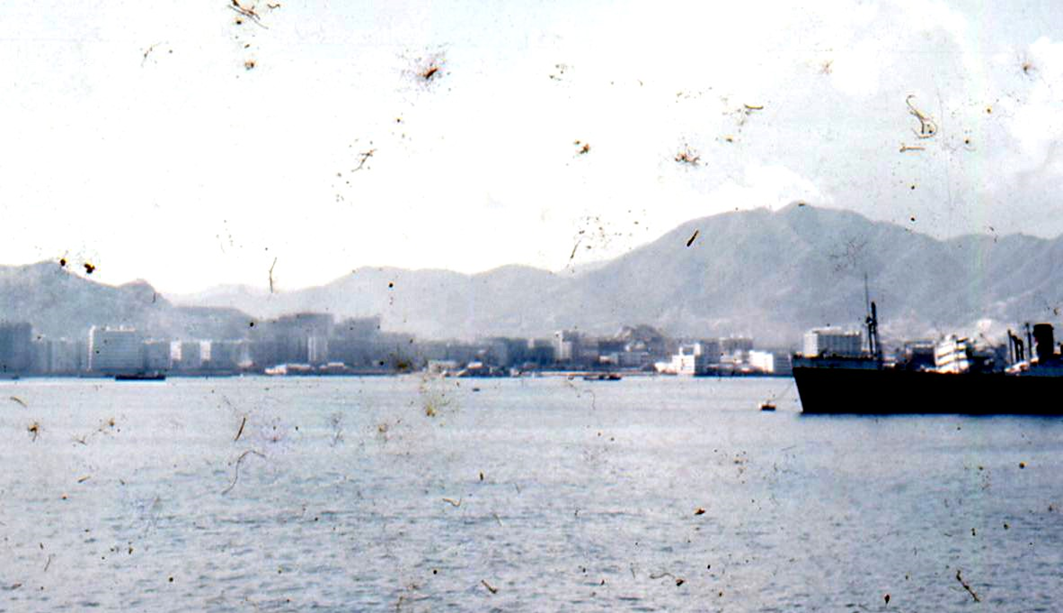 Diamond Head on the Kowloon side, which is now covered by buildings, is clearly visible. On deck of the Boisbain. Photo by author, 1962。