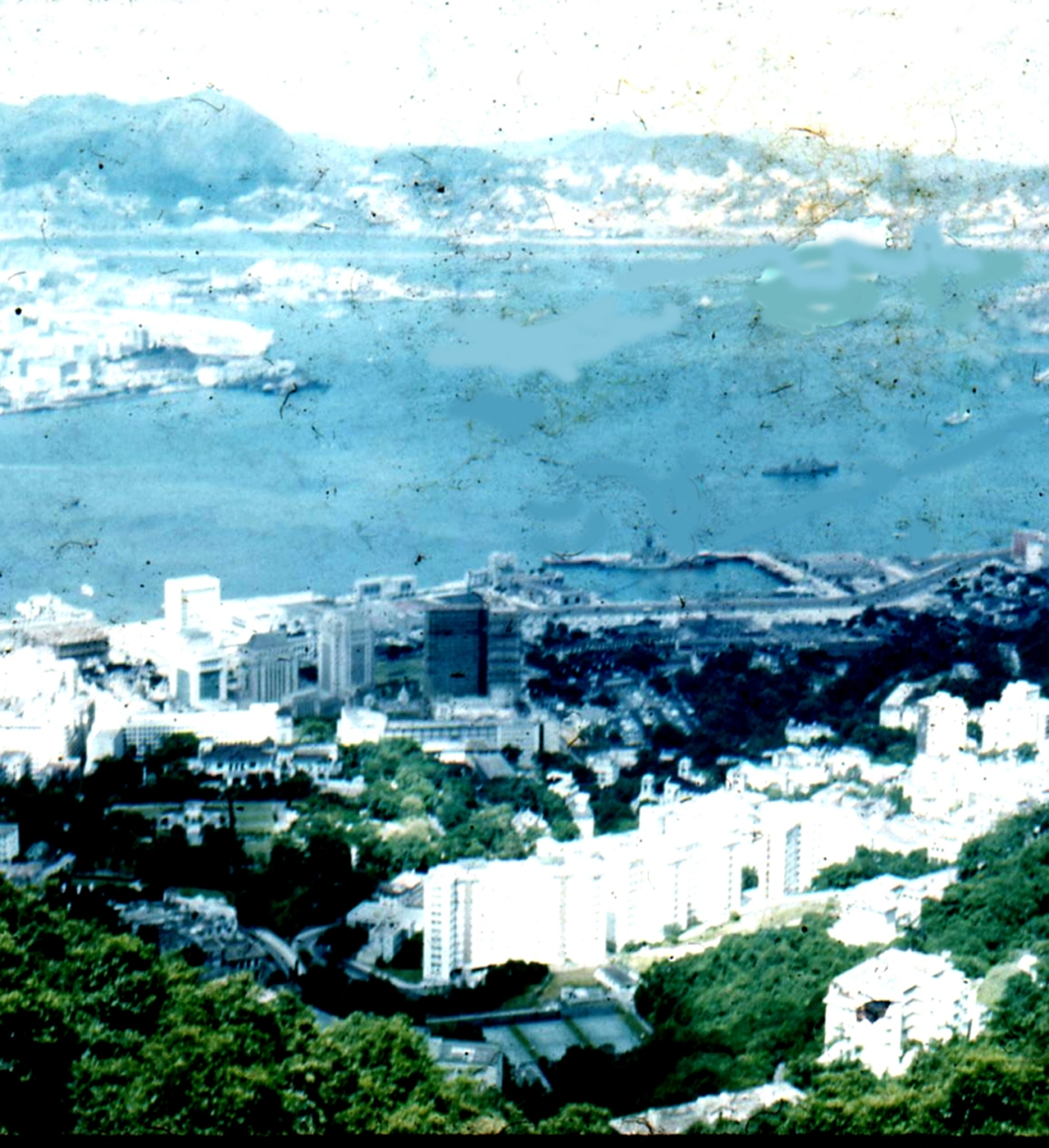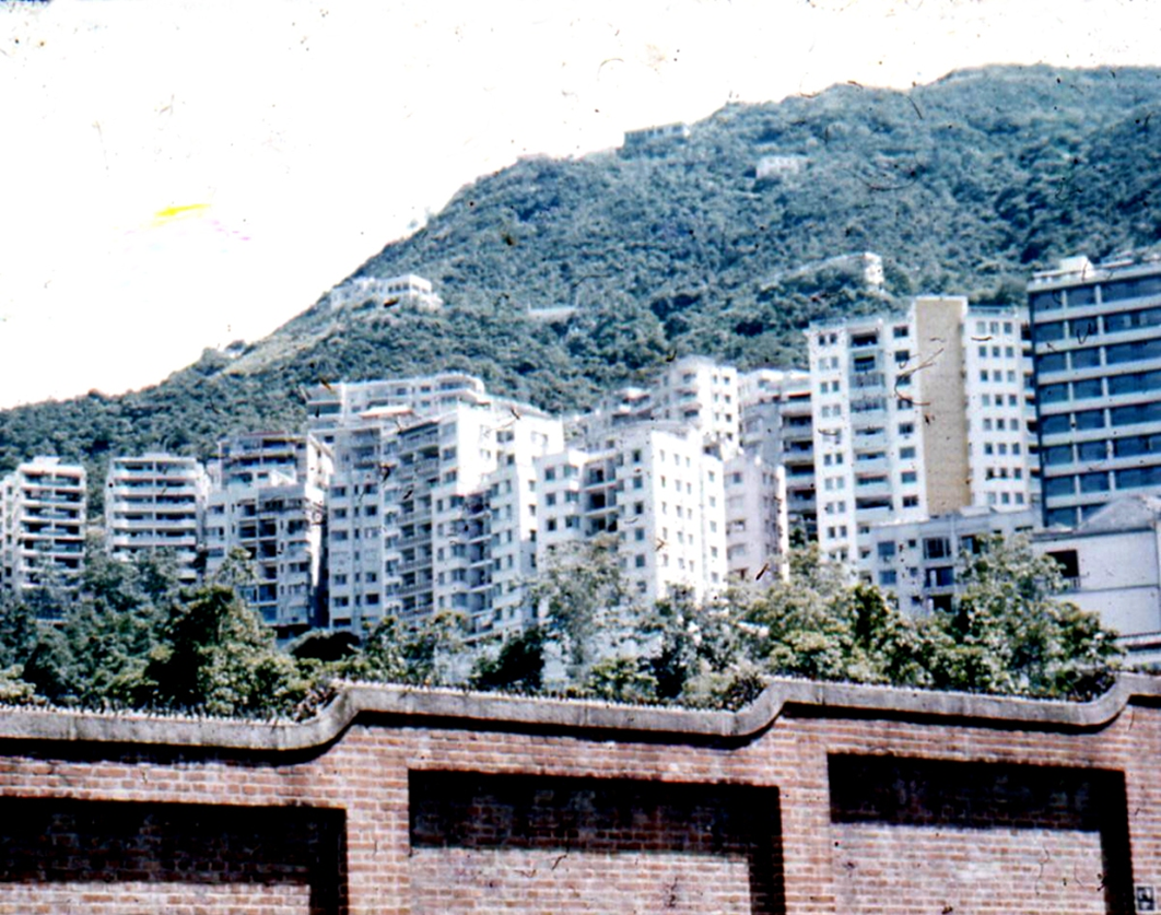 Around 1962, it was common for tourists to ride a cable car to get to the top of a mountain on Hong Kong Island and look down at the world below. As you go up, the buildings on the plains recede into the distance, improving your view.