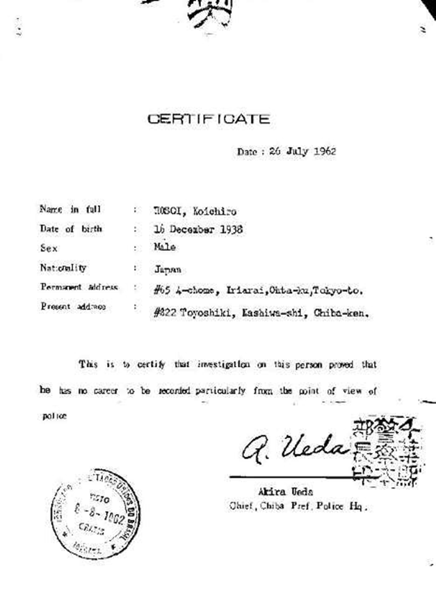 Documents proving no criminal record in Japan issued by the Chiba Prefectural Police