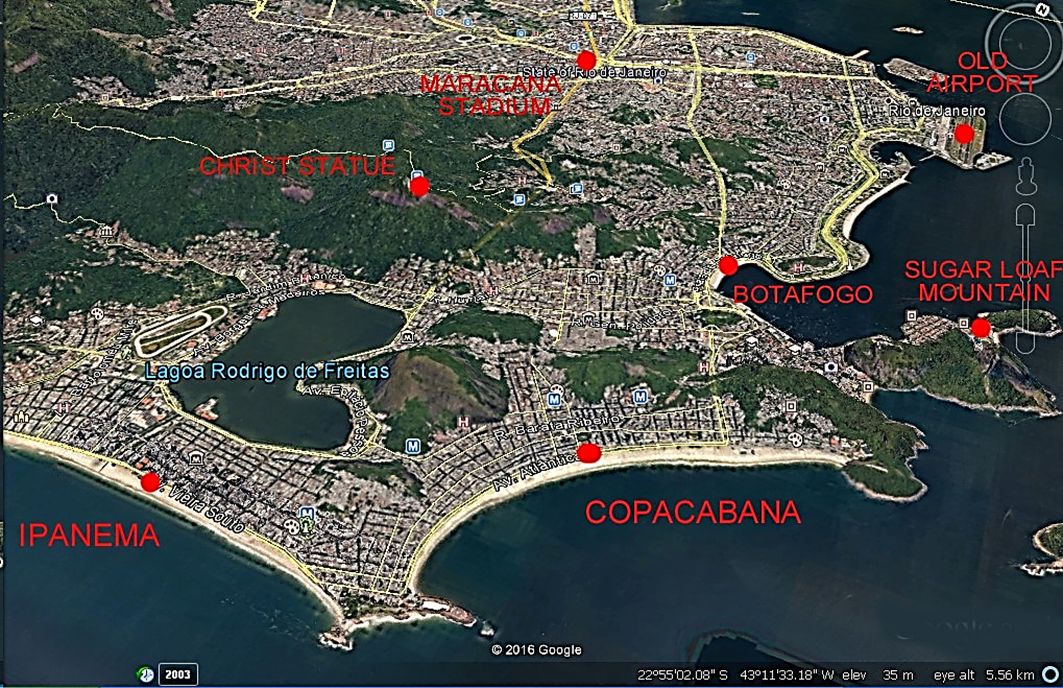 Below, a bird’s-eye view map of Rio de Janeiro