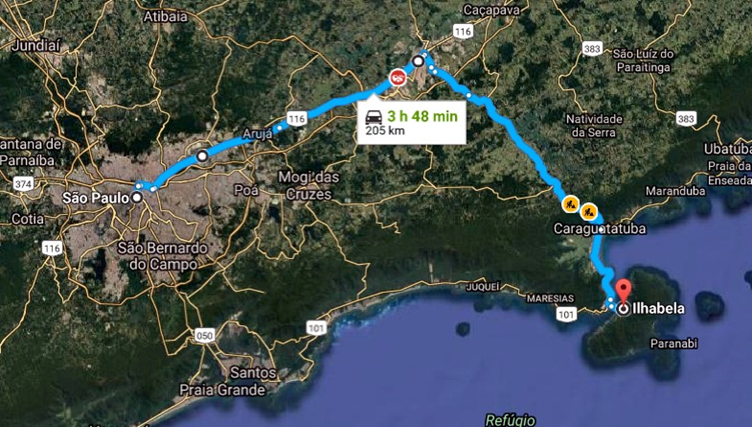 The road connecting the two largest cities, São Paulo and Rio, is called the Rodovia Presidente Dutra and is a major route for the movement of people and logistics. Follow this highway for about 100 km and turn right onto a public road that leads to your destination, San Sebastian.