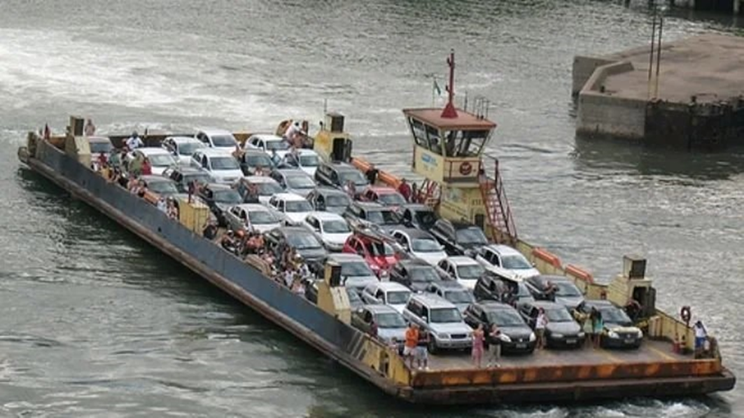A ferry ship connecting San Sebastián and Ilhabela 50 years later. Tourist passenger car packed like sushi