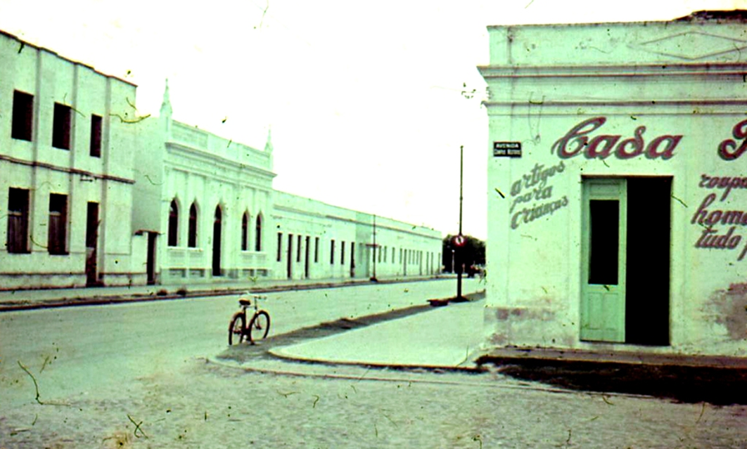 A typical city block in a Brazilian provincial city. It looks like a cowboy town in a Western movie.