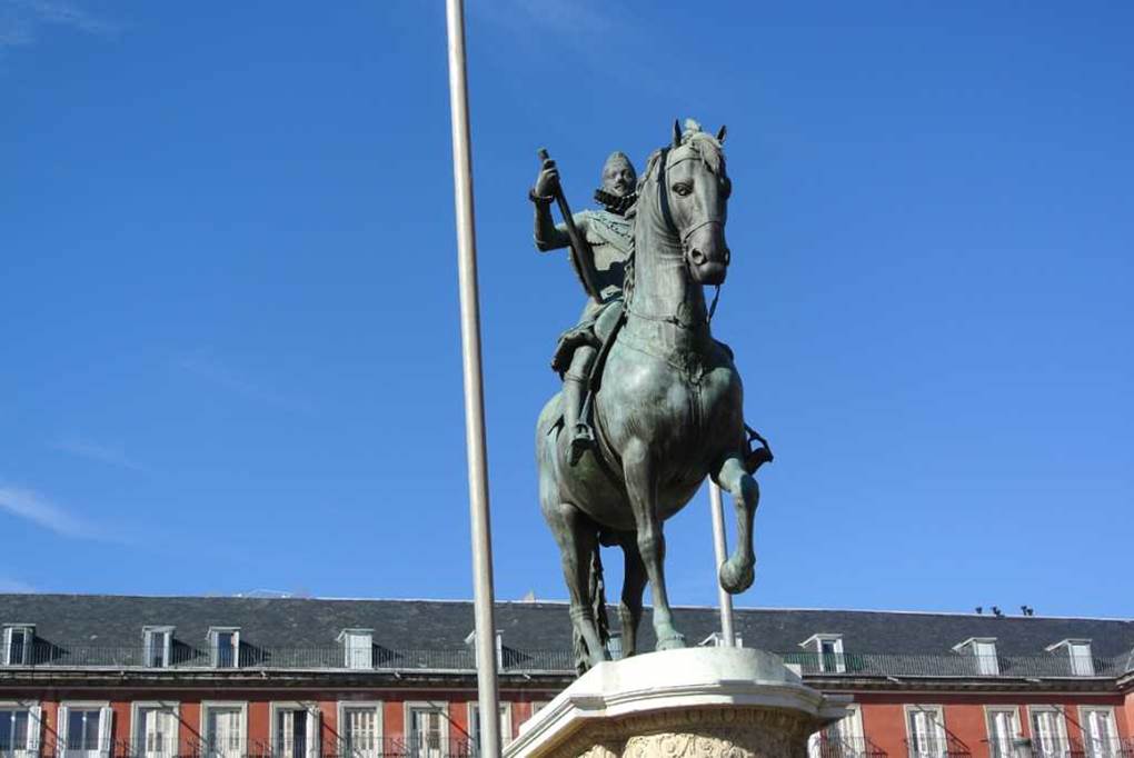 In the middle of the square is an equestrian statue of Felipe III (1578-1621). He was king of Spain, Naples, Sicily and Portugal.