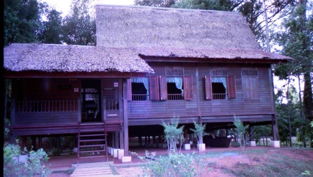 A typical Malay family home built using locally produced materials. It has ample eaves and good ventilation, making it well suited to the tropical climate.
