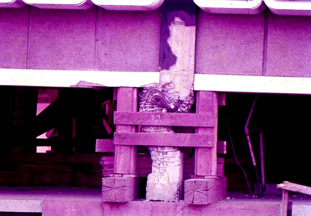 The concrete pillars on the first floor of the six-story building could not withstand the compressive load and all of them were destroyed.