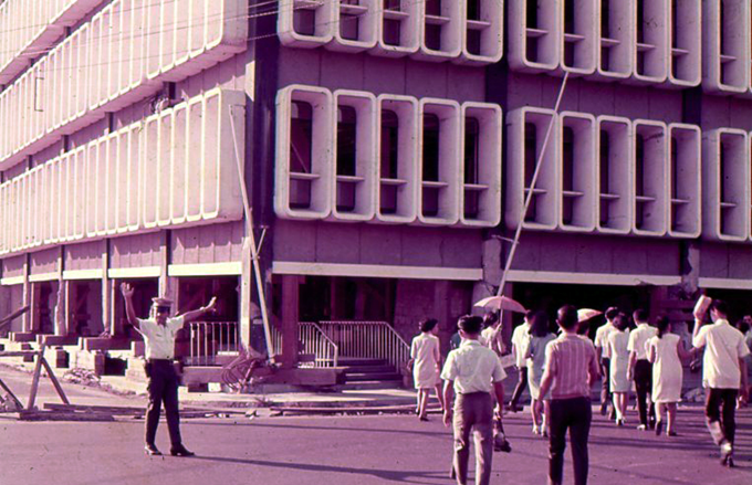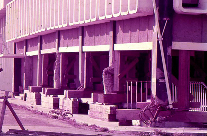 While strolling through the streets of Manila, I came across a large building that had been damaged by the earthquake.