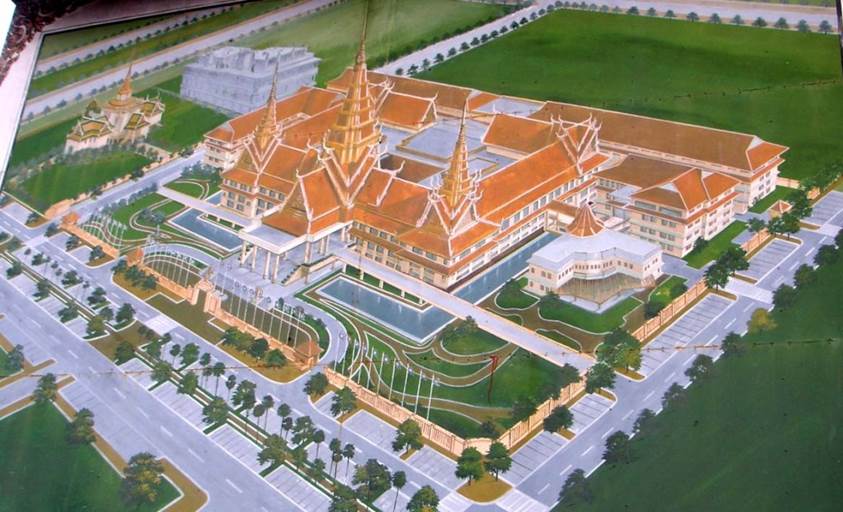 The King’s Palace of the Kingdom of Cambodia. Located in the center of Phnom Penh. Only a part of the Palace shown in this illustration is open to the public.