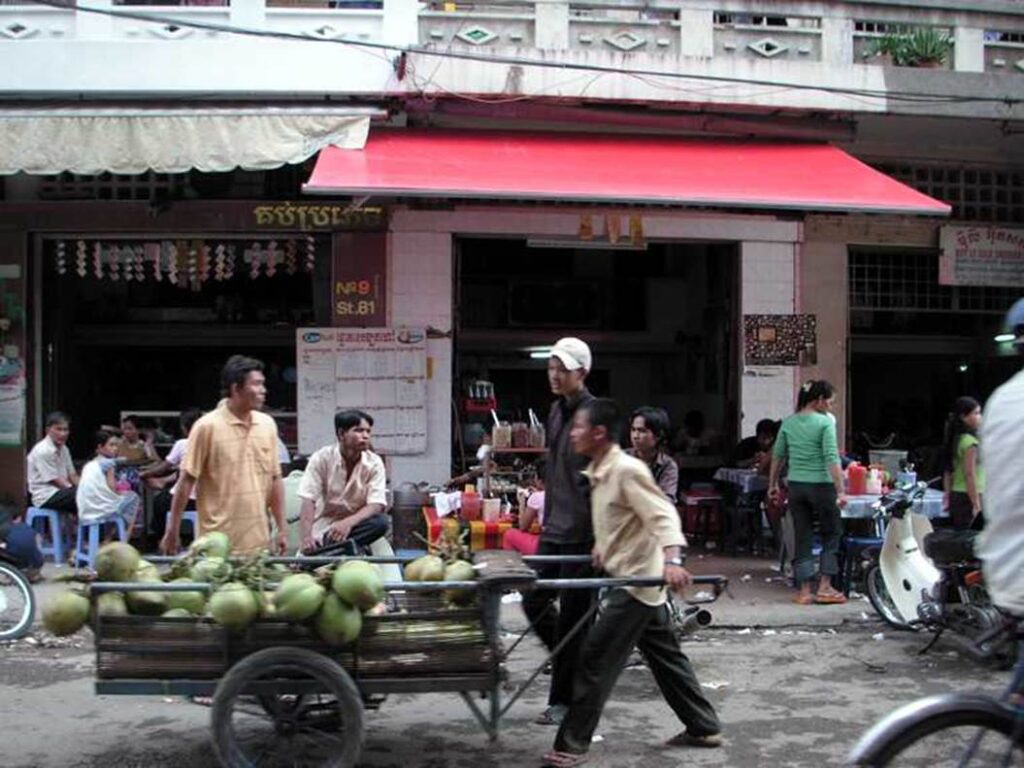 Walking through this bar-heavy neighbourhood, I noticed that I often saw elderly retired Western men. I presumed that they had come to Phnom Penh, where prices and labour costs are low, and were enjoying their retirement in this entertainment district using their pensions from their home countries.