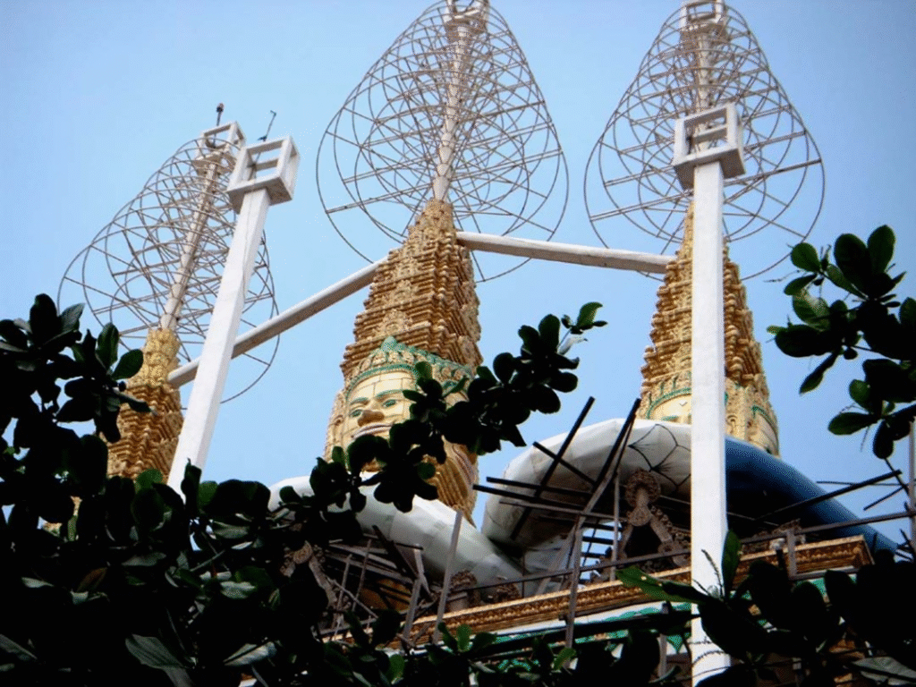 I found this pagoda on the edge of Phnom Penh city. Compared to the royal palace building, which is a sub-style of Thai architecture, this building is more similar to Cambodian Khmer architecture, and is a comfortable building.