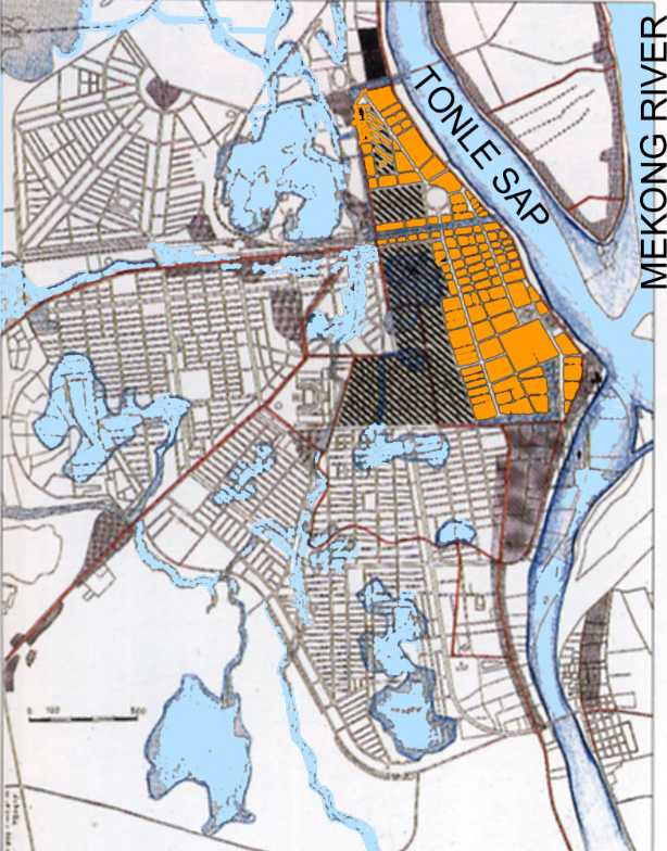 A map of the city of Phnom Penh at the height of the flooding.