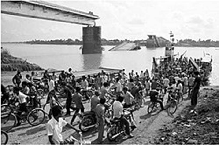 The history reveals that the Chroy Changva Bridge was completed in 1966 with the cooperation of Japan. Located slightly north of the center of Phnom Penh City, it is an important national highway bridge over the 700-meter-wide Tonle Sap River. It was destroyed by Viet Cong suicide bombers around 1972 during the civil war.