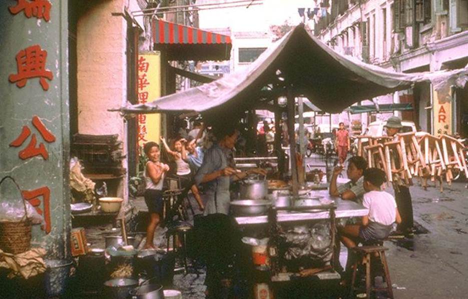 Sewage from washing food and dishes drips into the rainwater ditches on the side of the road, and a foul smell wafts through the streets. In the 1980s, such open-air food stalls were wiped out of Singapore by ordinance.