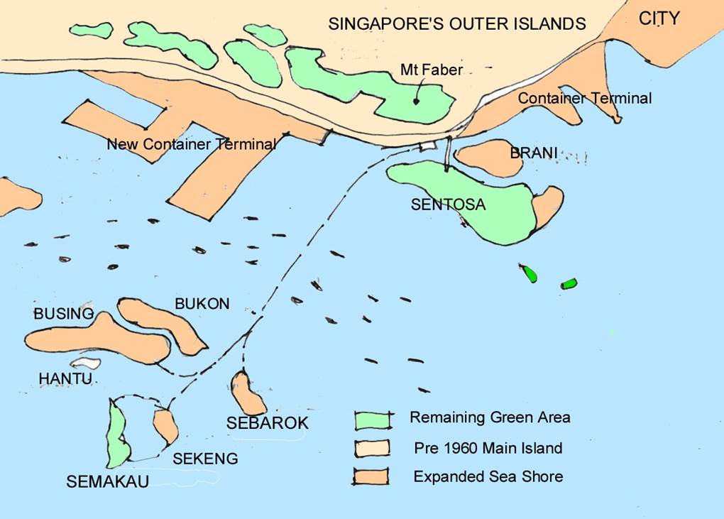 No other island has changed as much as this one in the century since independence from the British colony. It has transformed from a quiet, self-sufficient island into a tin refinery, a naval port, and now a container island.