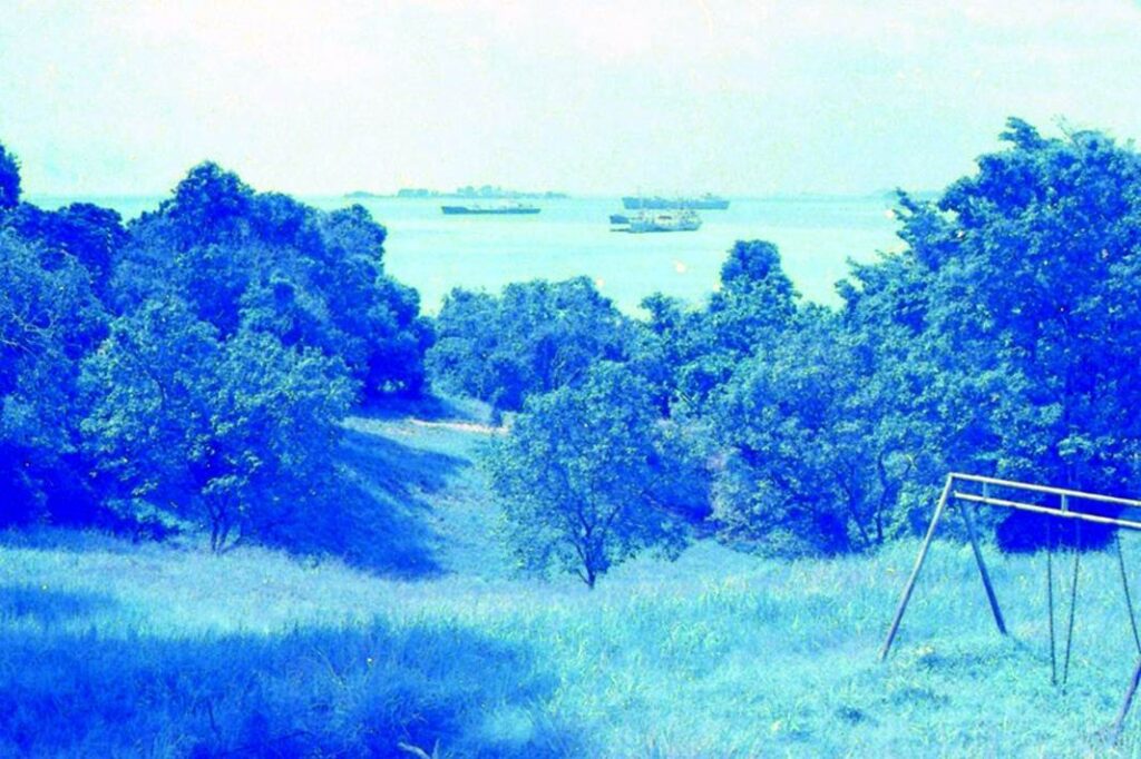 View of Singapore Strait from Sentosa Island in 1970. Island’s state left as after the war.