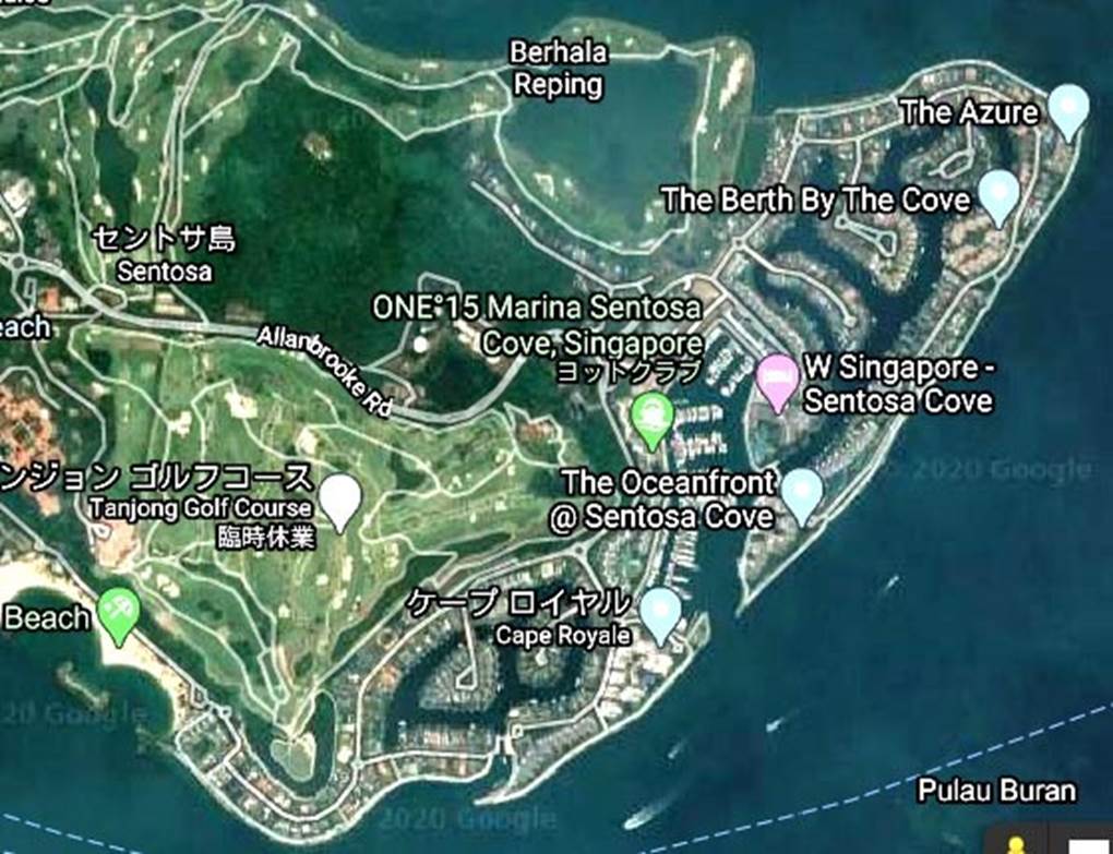 A group of mansions developed around 2005 on reclaimed land of the east coast of Sentosa Island. Yachts and motorboats can dock directly in front of the houses. In Singapore, there are various legal restrictions for foreigners to own a house with land.