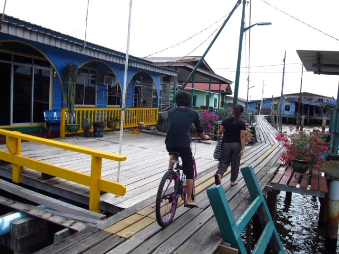 Within the village, individual dwellings and other facilities are connected like a network by a boardwalk over water.