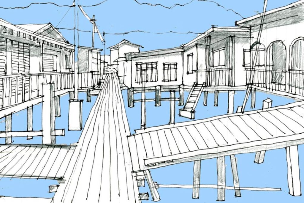 In other words, the village’s infrastructure of transportation, the high-speed boats, and the walkways for residents are clearly separated in three dimensions.