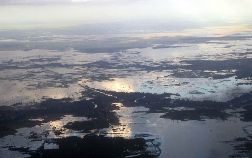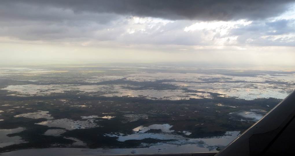 When preparing to land during the rainy season, you will have a bird’s-eye view of the endless flooded land.