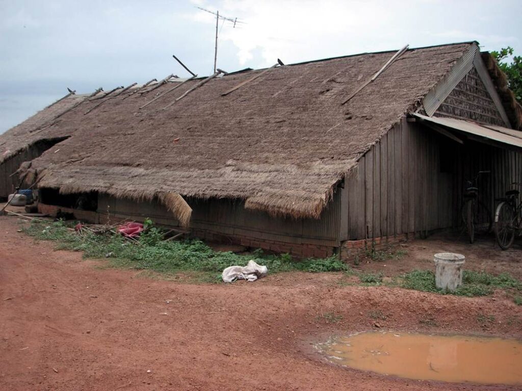 A house on stilt on land on the shore of Tonle Sap Lake.
