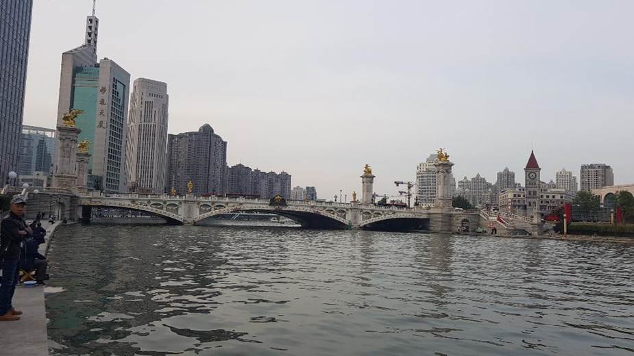 Arrived at the Haihe River, which runs through the center of Tianjin.