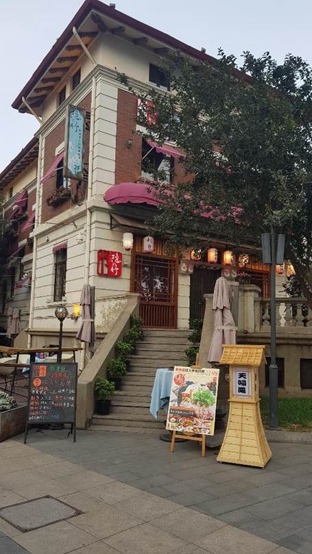 Just after crossing the Bei’an Bridge, there is a sign for a Japan restaurant tempura restaurant.