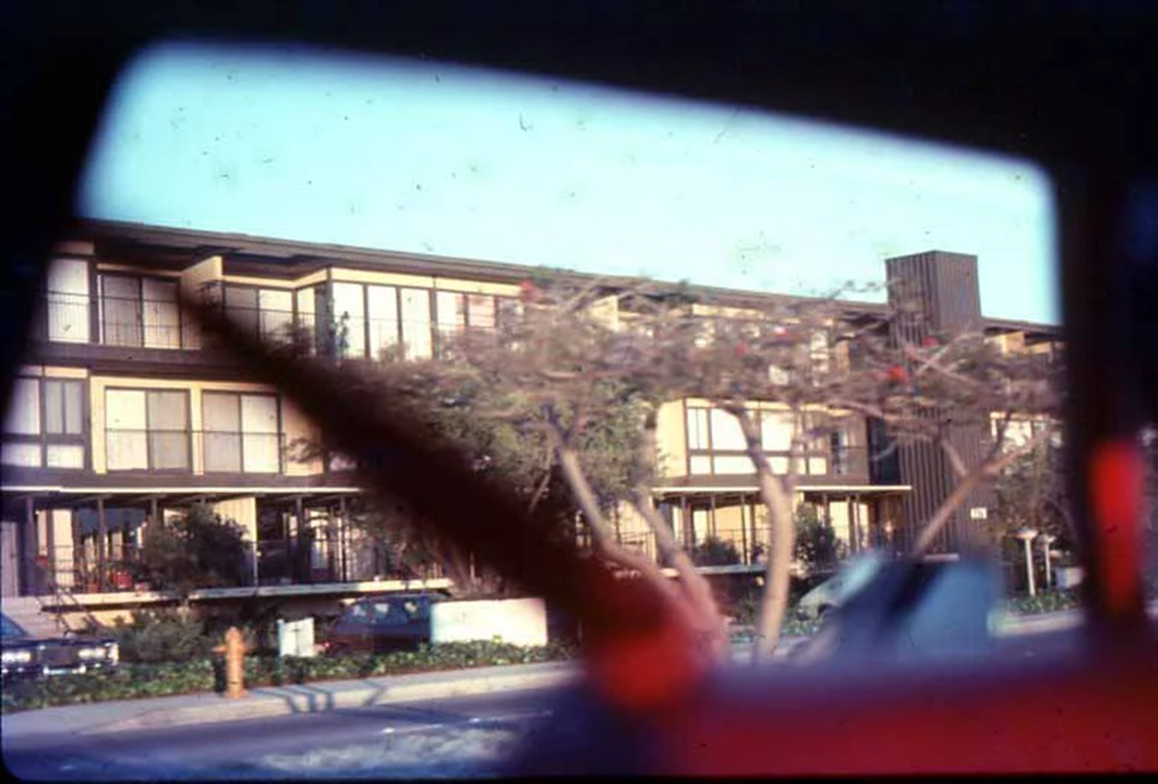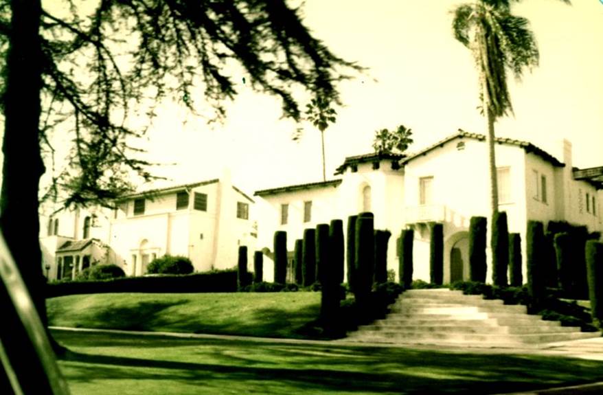 A mansion on the uptown side near Hollywood. From Hollywood to Santa Monica Boulevard, large houses are lined up on spacious lots like this one. There are no walls or fences on the property boundaries. It seems like the area was safe at the time.