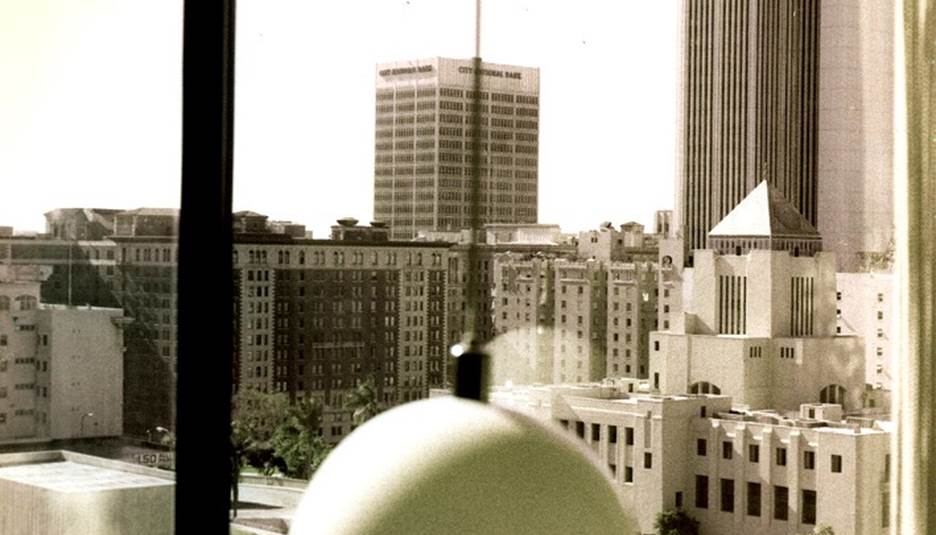 Taken from a guest room at the Bonaventure Hotel in Los Angeles, a Westin hotel.