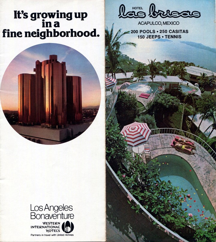 The Bonaventure Hotel was an unusual piece of architecture at the time, with four glass cylinders as its outline. I can’t believe I can stay at such a pop hotel! I immediately got a brochure.