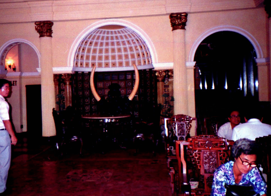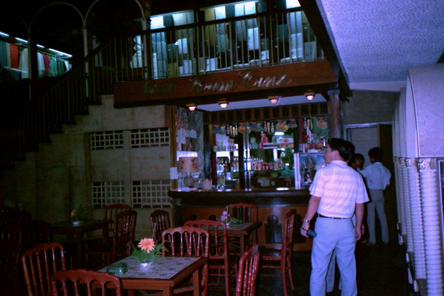 The dimly lit lobby lounge of the Chu Long Hotel (formerly the Majestic Hotel).